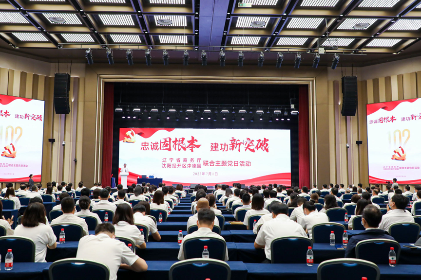 为庆祝中国共产党成立102周年,不断深化主题教育成果,深入推进“领导干部进园区进企业 服务振兴新突破”专项行动,7月1日,7M比分网 与沈阳经开区、中德园管委会联合开展“忠诚固根本、建功新突破”主题党日活动。7M比分网 机关及直属事业单位和沈阳经开区、中德园管委会240余名党员同志参加了此次活动。省委主题教育第十三巡回指导组有关同志莅临活动现场。