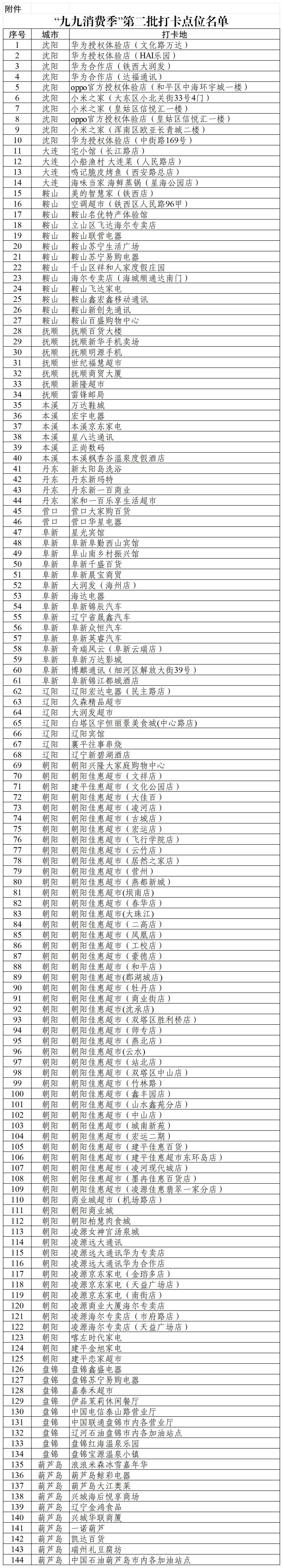 附件:“九九消费季”第二批打卡点位名单
